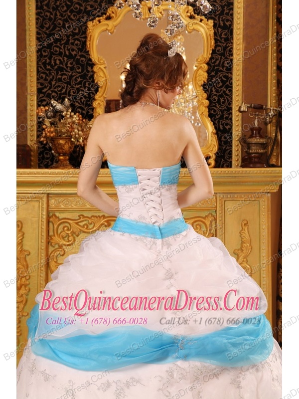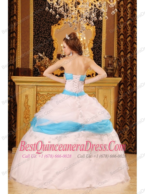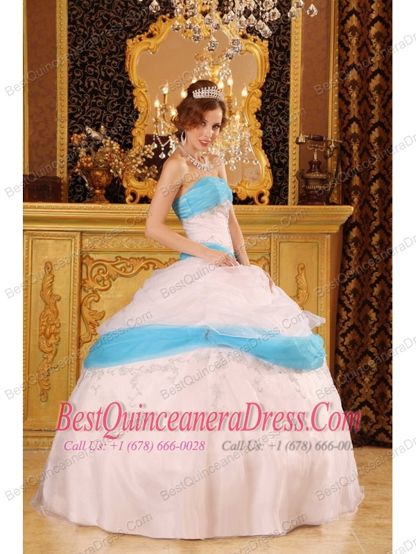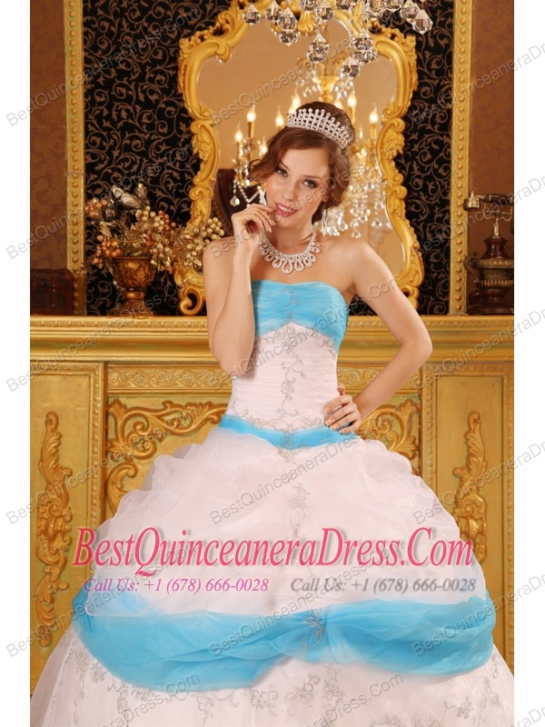 White Ball Gown Strapless Floor-length Appliques Satin and Organza Quinceanera Dress