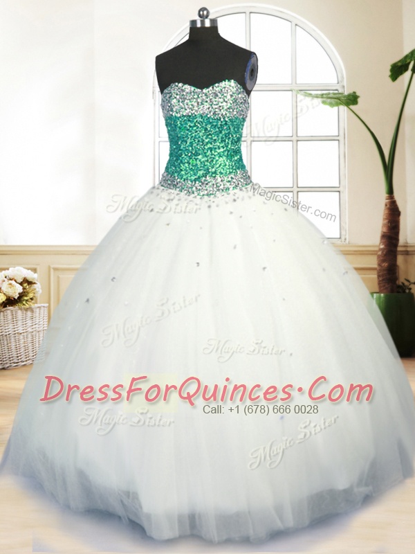 White Sleeveless Beading Floor Length Sweet 16 Dress
