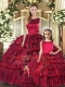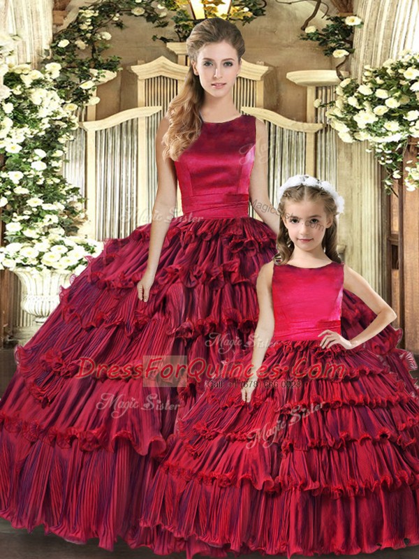 Wine Red Ball Gowns Organza Scoop Sleeveless Ruffled Layers Floor Length Lace Up 15th Birthday Dress