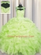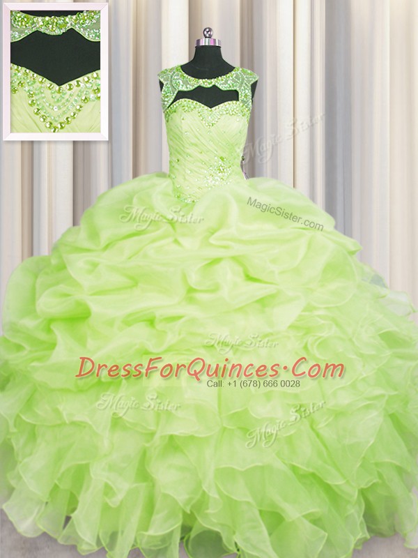 Yellow Green Scoop Lace Up Beading and Pick Ups Ball Gown Prom Dress Sleeveless
