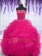 Artistic Strapless Sleeveless Organza Sweet 16 Dress Beading and Ruffles Brush Train Lace Up