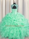 Charming Scoop Apple Green Ball Gowns Beading and Pick Ups 15th Birthday Dress Lace Up Organza Sleeveless Floor Length