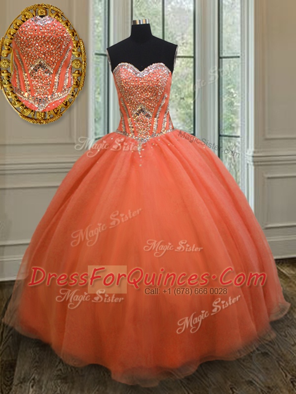 Colorful Sequins Floor Length Ball Gowns Sleeveless Orange Red Sweet 16 Dresses Lace Up