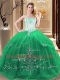Customized Floor Length Green Sweet 16 Dress Strapless Sleeveless Lace Up