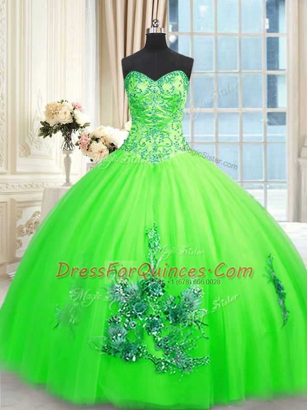Decent Lace Up 15th Birthday Dress Appliques Sleeveless Floor Length