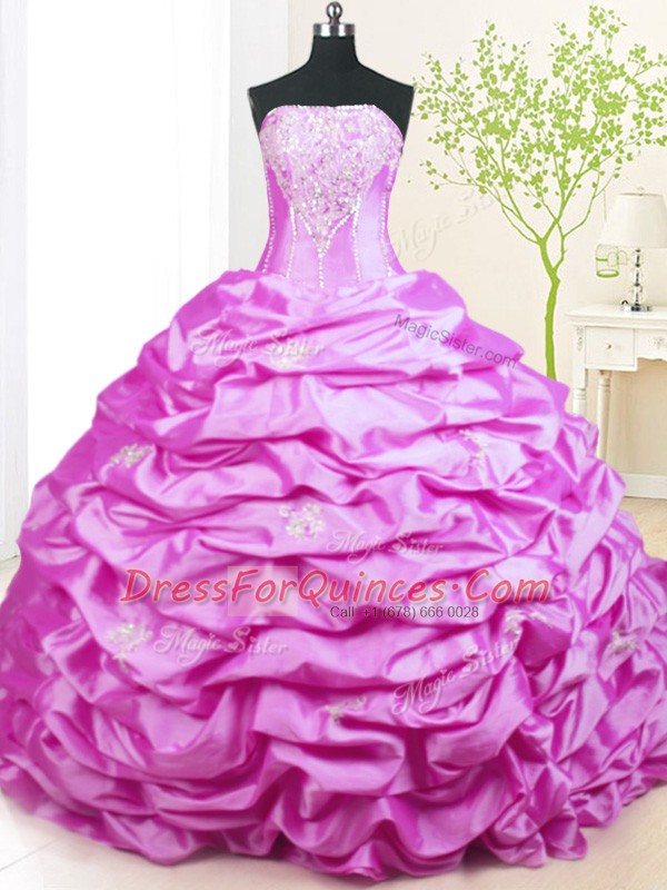 Decent Pick Ups Lilac Sleeveless Taffeta Sweep Train Lace Up Sweet 16 Dress for Military Ball and Sweet 16 and Quinceanera