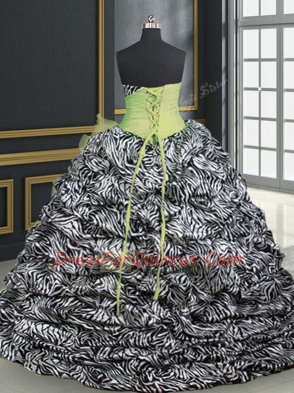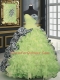 Decent Printed Sleeveless With Train Beading and Ruffles and Pattern Lace Up Ball Gown Prom Dress with Yellow Green Brush Train