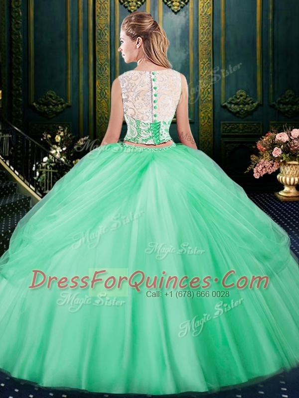 Decent Scoop Pick Ups Floor Length Two Pieces Sleeveless Apple Green 15 Quinceanera Dress Zipper