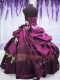 Discount Strapless Sleeveless Quinceanera Gowns Floor Length Appliques and Pick Ups Purple Taffeta