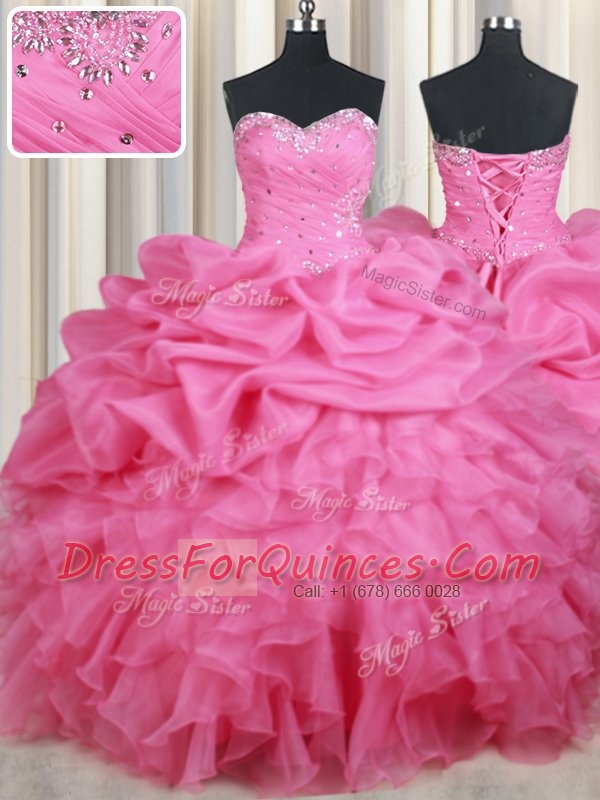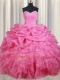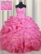 Most Popular Rose Pink Sleeveless Beading and Ruffles and Pick Ups Floor Length Quinceanera Dresses