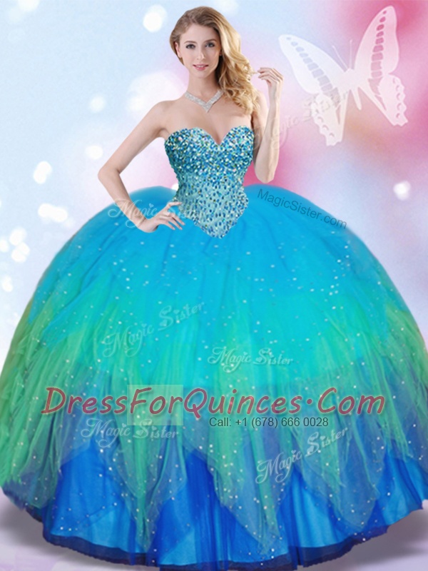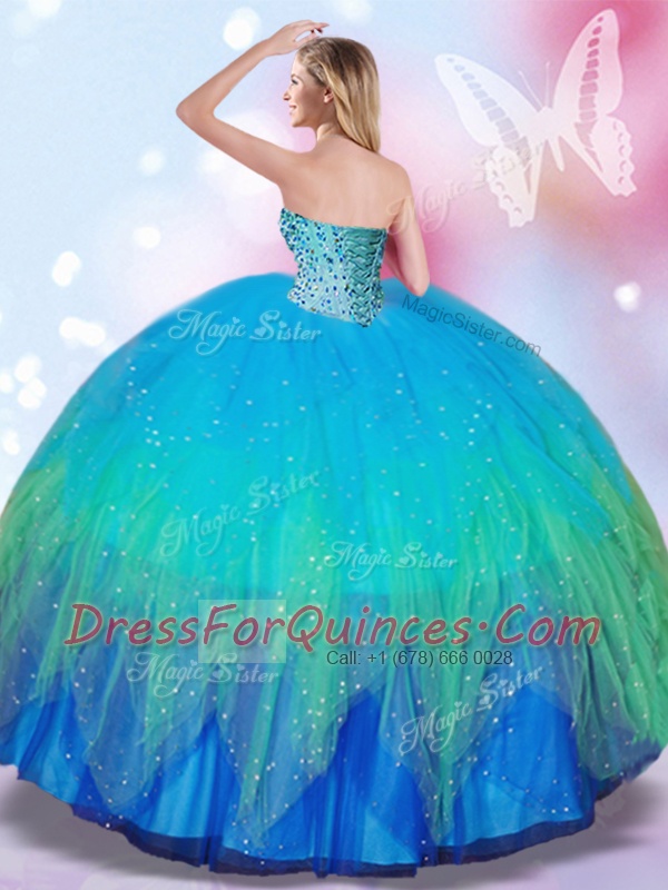 Multi-color Tulle Lace Up Quinceanera Dress Sleeveless Beading