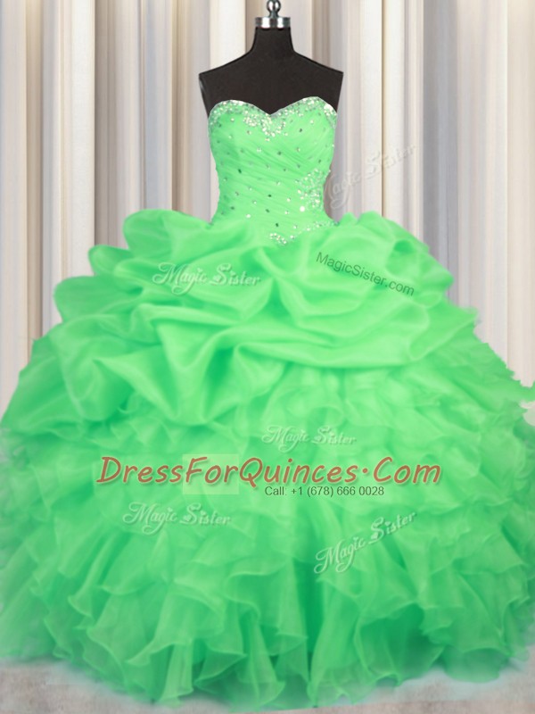 Stylish Pick Ups Floor Length Ball Gowns Sleeveless Green Sweet 16 Dress Lace Up
