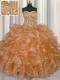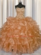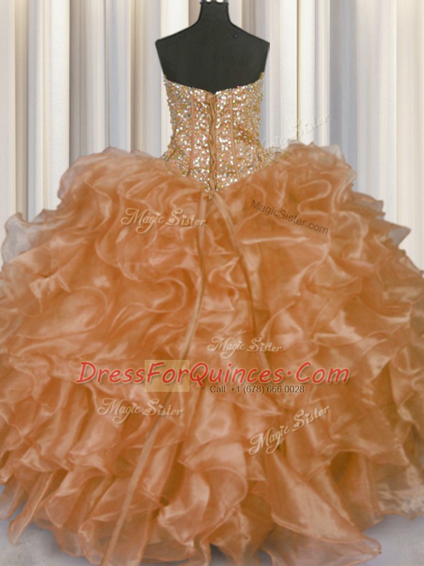Visible Boning Ball Gowns Quinceanera Dress Champagne Strapless Organza Sleeveless Floor Length Lace Up