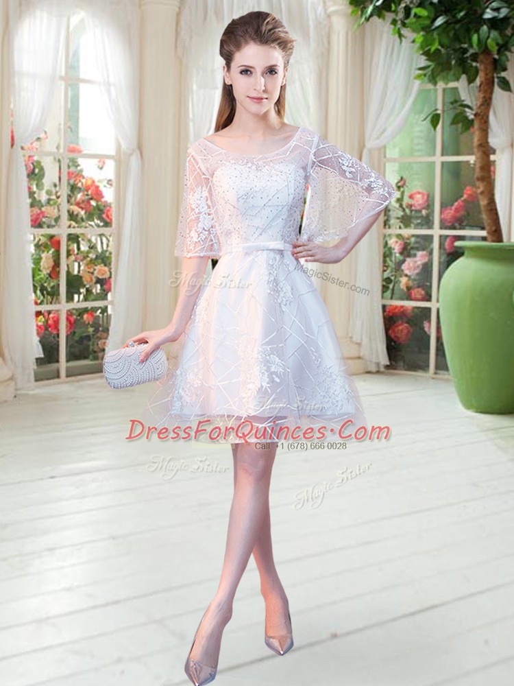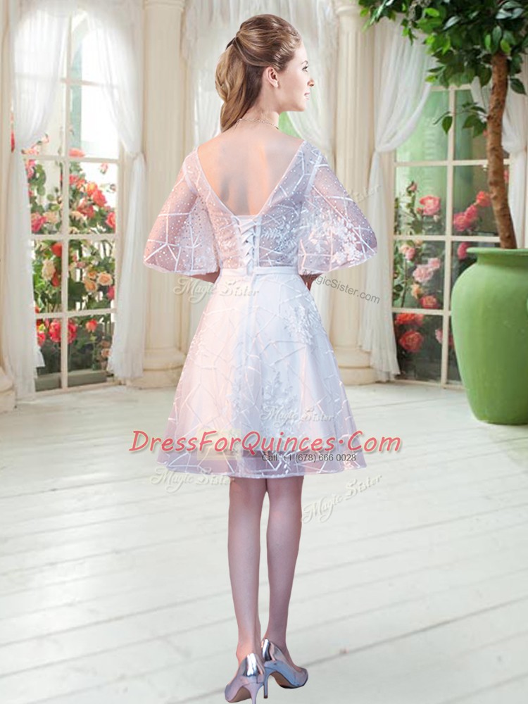 Beautiful Lace Half Sleeves Knee Length Prom Evening Gown and Beading