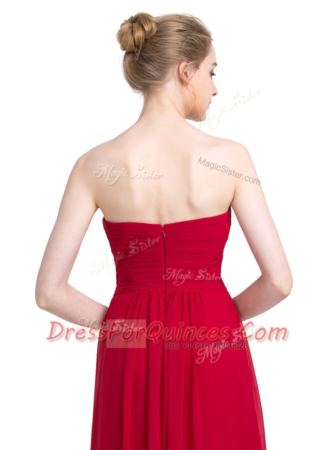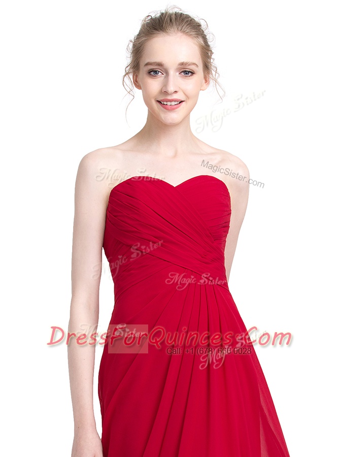 Chic Red Sweetheart Neckline Ruching Dress for Prom Sleeveless Zipper