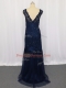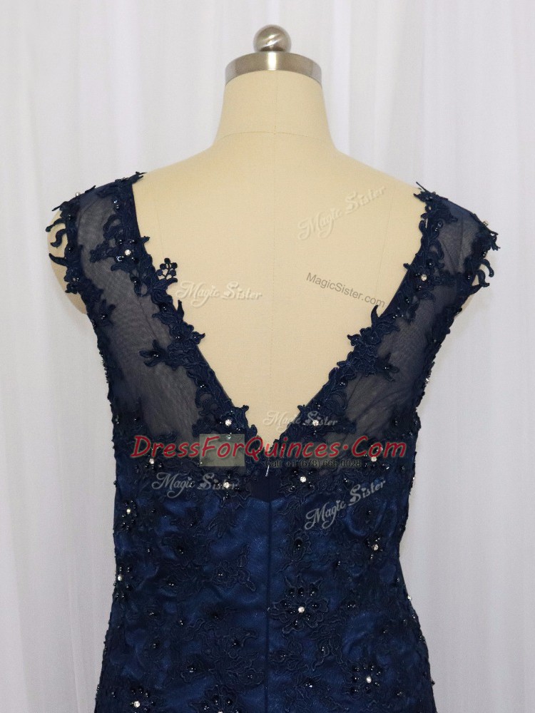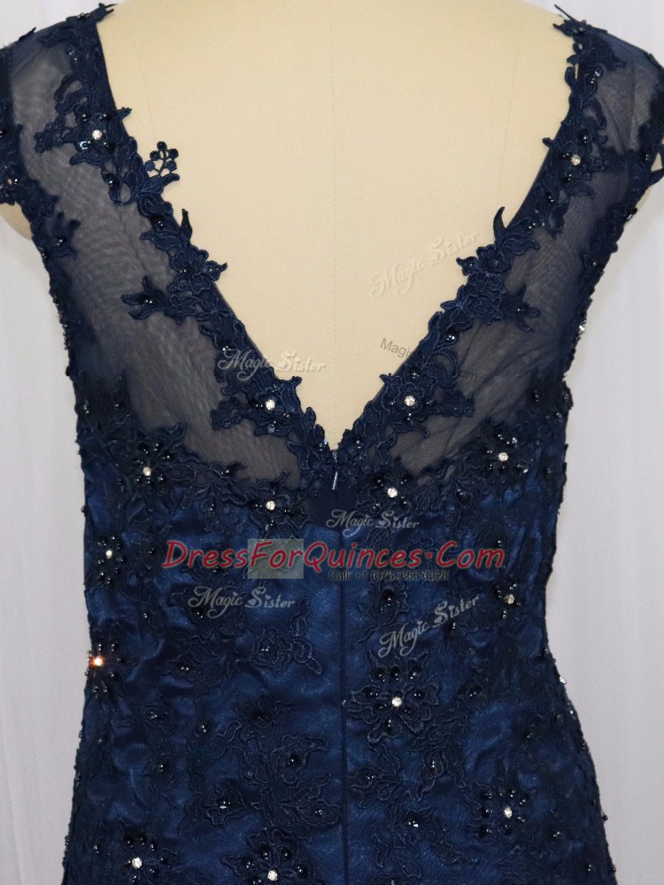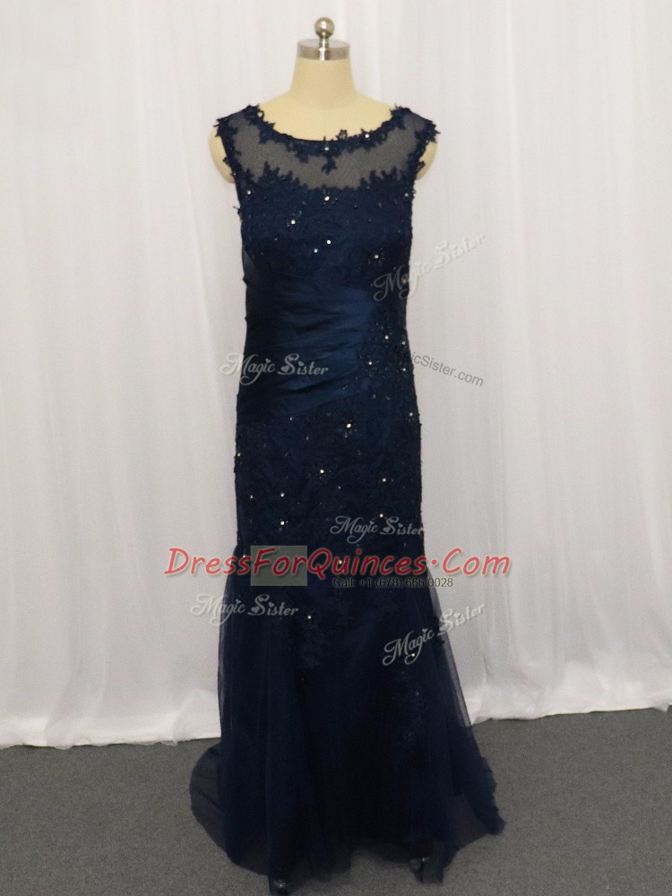 Column/Sheath Navy Blue Scoop Tulle Sleeveless Floor Length Zipper