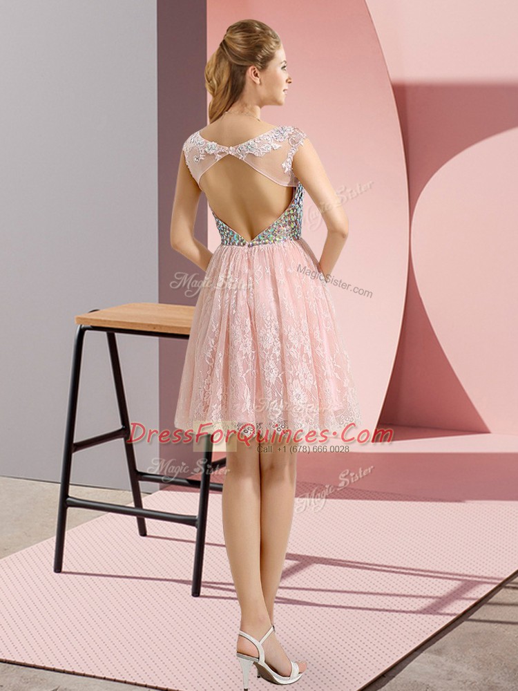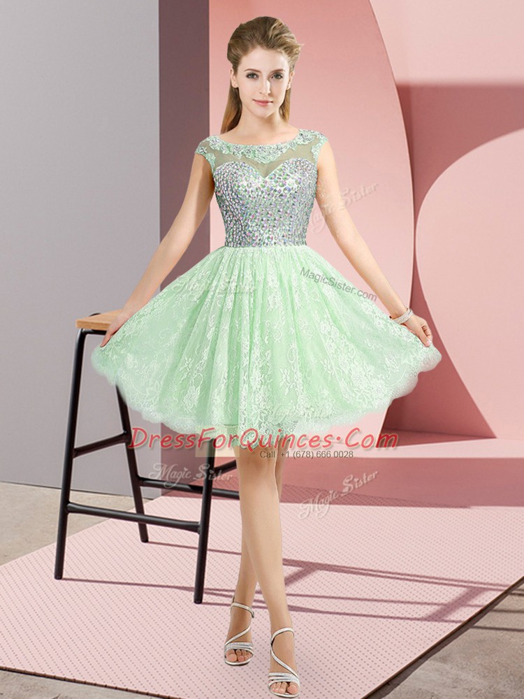 Custom Fit Apple Green Scoop Backless Beading Homecoming Dress Cap Sleeves