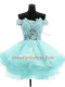 Customized Aqua Blue Organza Zipper Off The Shoulder Sleeveless Mini Length Homecoming Dress Beading and Lace