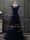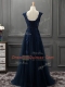 Cute A-line Prom Party Dress Navy Blue Scoop Tulle Sleeveless Floor Length Lace Up