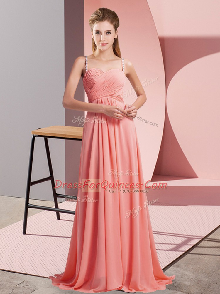 Elegant Chiffon Sleeveless Evening Dress Sweep Train and Ruching