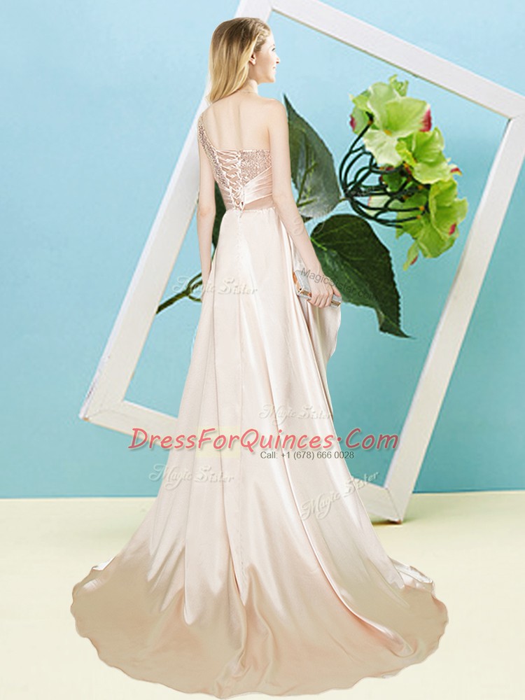 Empire Lavender One Shoulder Elastic Woven Satin and Sequined Sleeveless High Low Lace Up