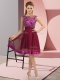 Fabulous Wine Red Sleeveless Knee Length Appliques Backless Prom Dresses