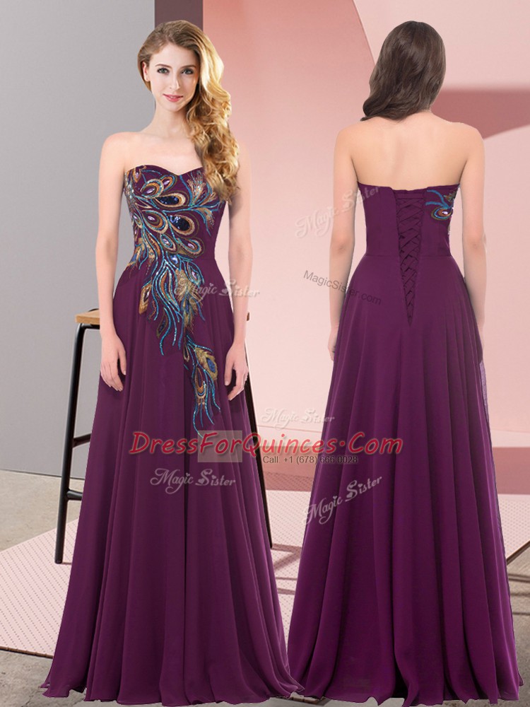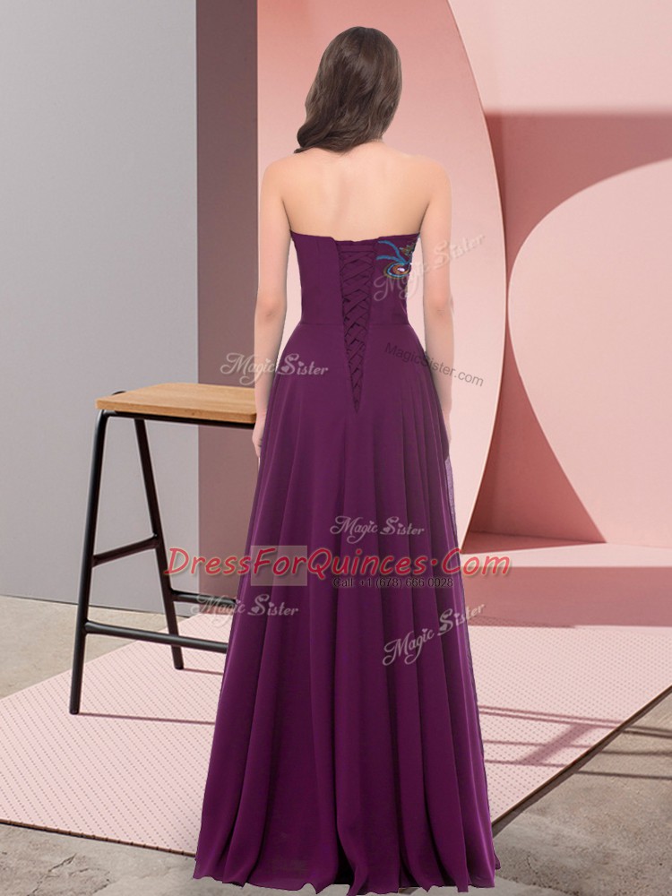 Fashion Floor Length Dark Purple Prom Dress Sweetheart Sleeveless Lace Up