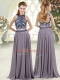 Glittering Grey Backless Prom Gown Beading Sleeveless Floor Length