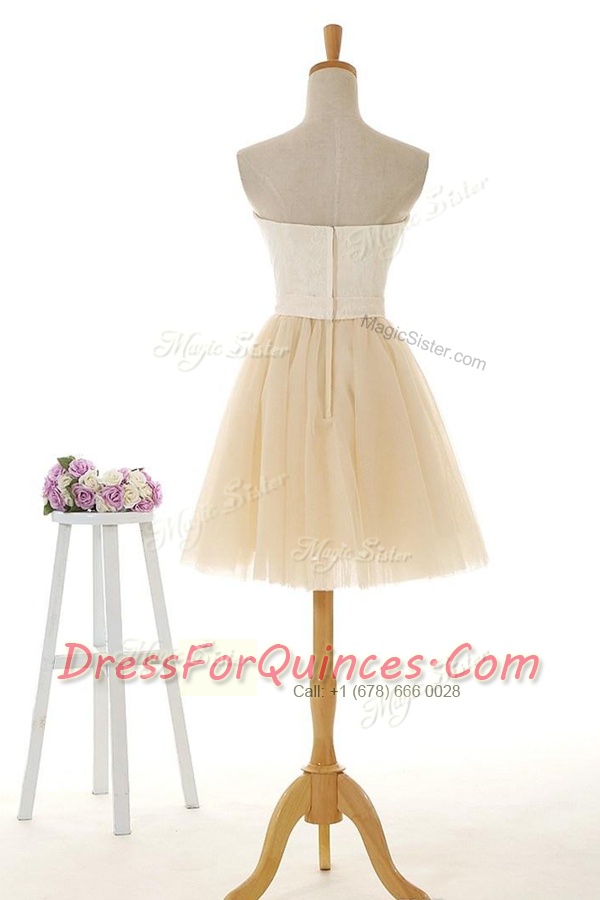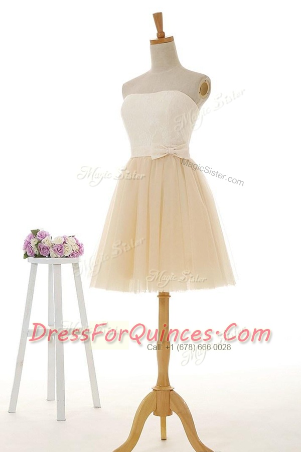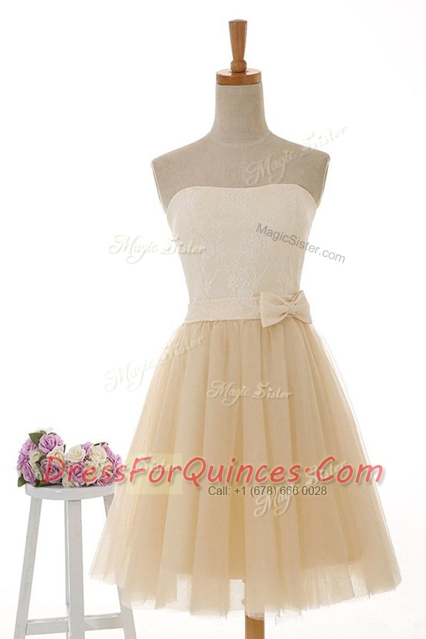 Glorious Champagne Sleeveless Lace Knee Length Prom Dress
