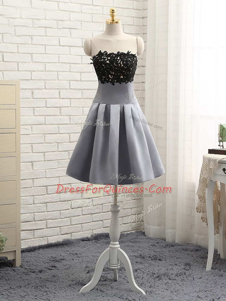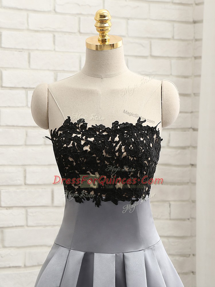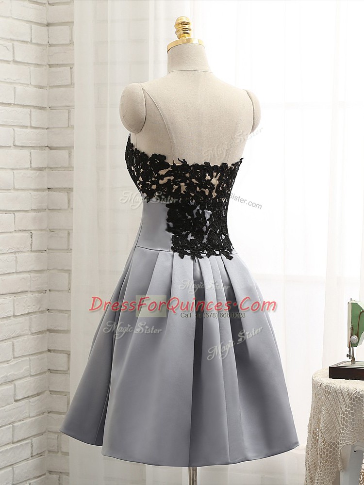 Grey A-line Lace and Appliques Dress for Prom Side Zipper Satin Sleeveless Mini Length