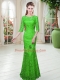 Half Sleeves Floor Length Prom Dresses and Lace