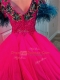 Ideal Mini Length Fuchsia Prom Dress Organza Short Sleeves Beading and Sequins