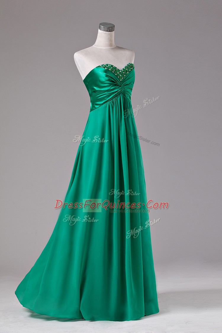 Luxury Sweetheart Sleeveless Prom Evening Gown Floor Length Beading Green Chiffon