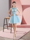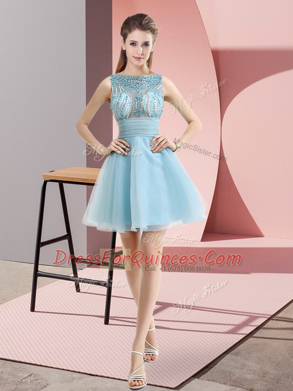 Mini Length A-line Sleeveless Aqua Blue Evening Dress Backless