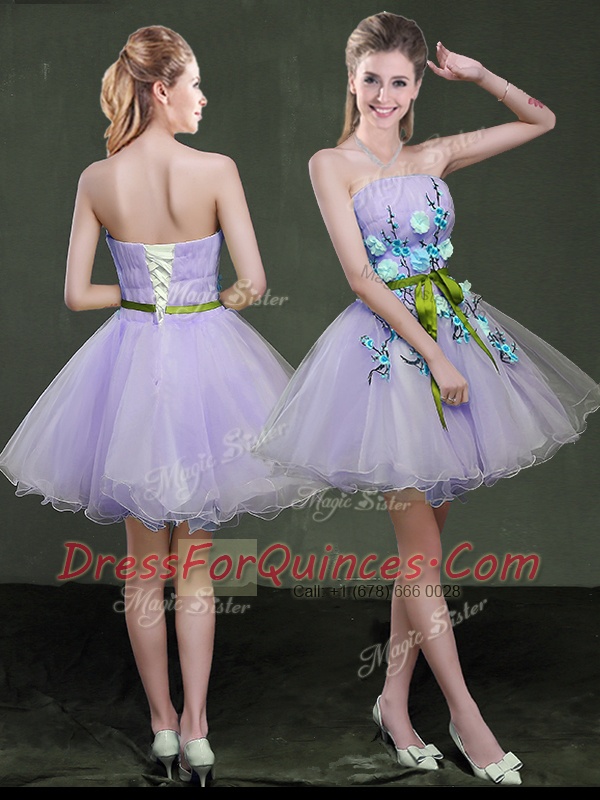 Mini Length A-line Sleeveless Lavender Evening Dress Lace Up