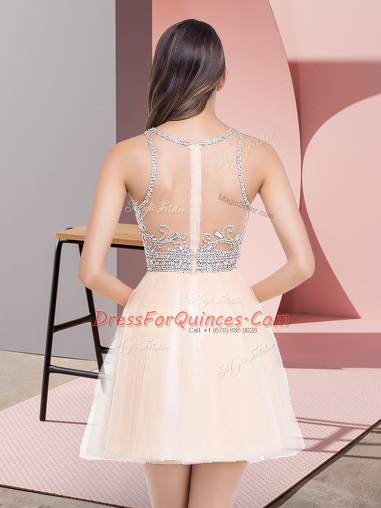Mini Length Empire Sleeveless Peach Prom Party Dress Zipper