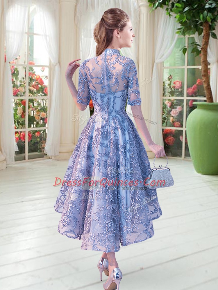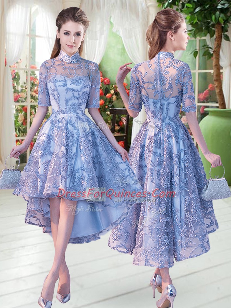 Modest Half Sleeves Appliques Lace Up Homecoming Dress
