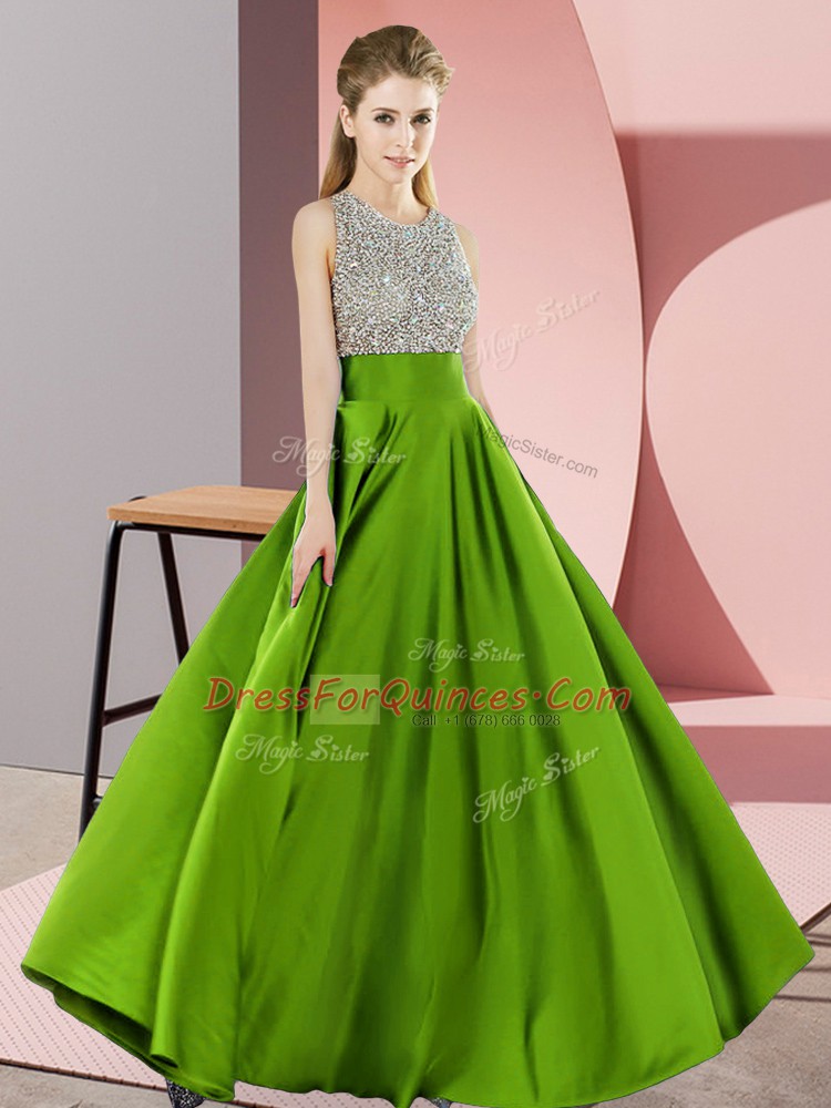 Most Popular Backless Scoop Beading Prom Party Dress Elastic Woven Satin Sleeveless