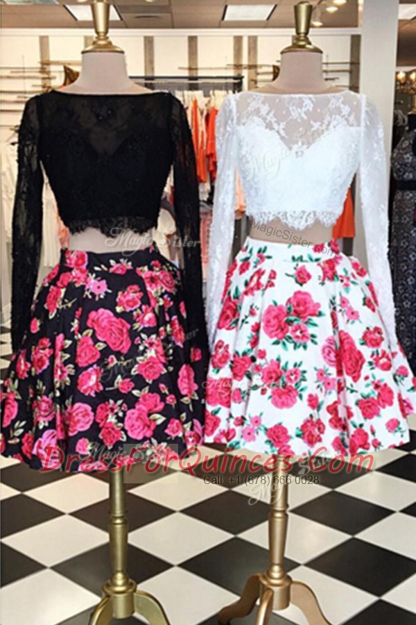 Multi-color Bateau Zipper Lace and Pattern Prom Dresses Long Sleeves