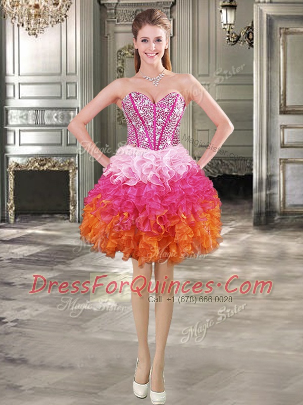 Multi-color Lace Up Sweetheart Beading and Ruffles Dress for Prom Organza Sleeveless