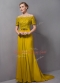 Noble Empire Short Sleeves Yellow Dress for Prom Sweep Train Zipper