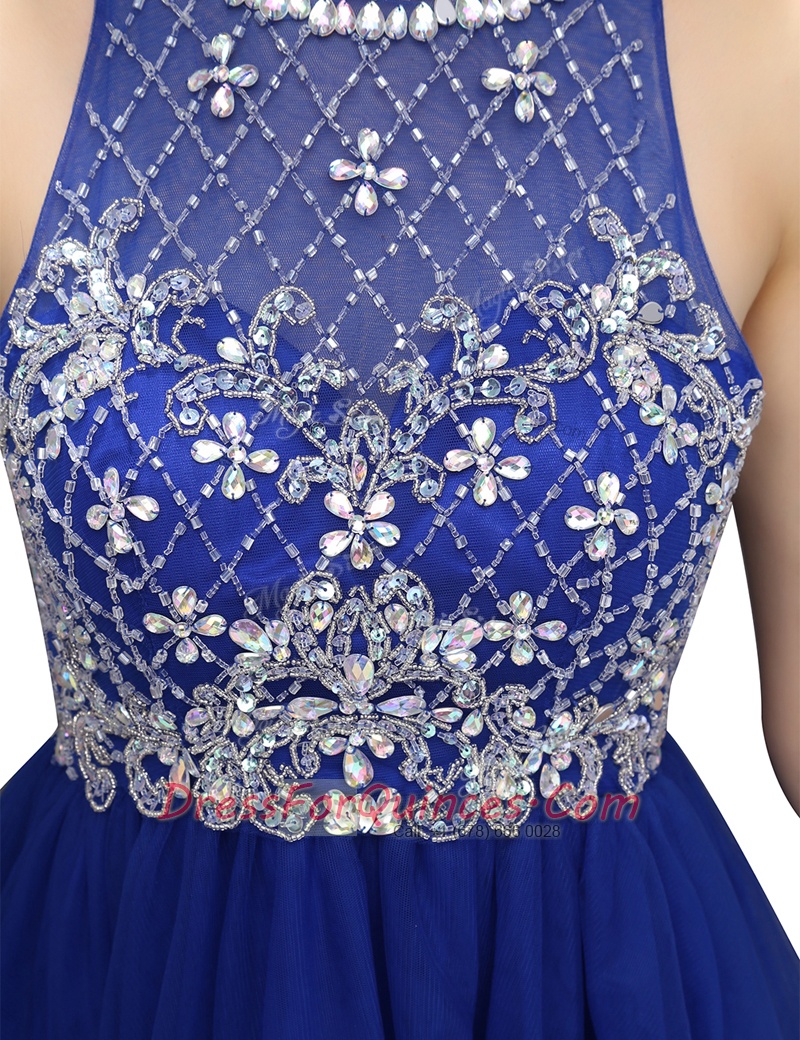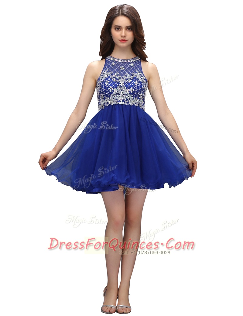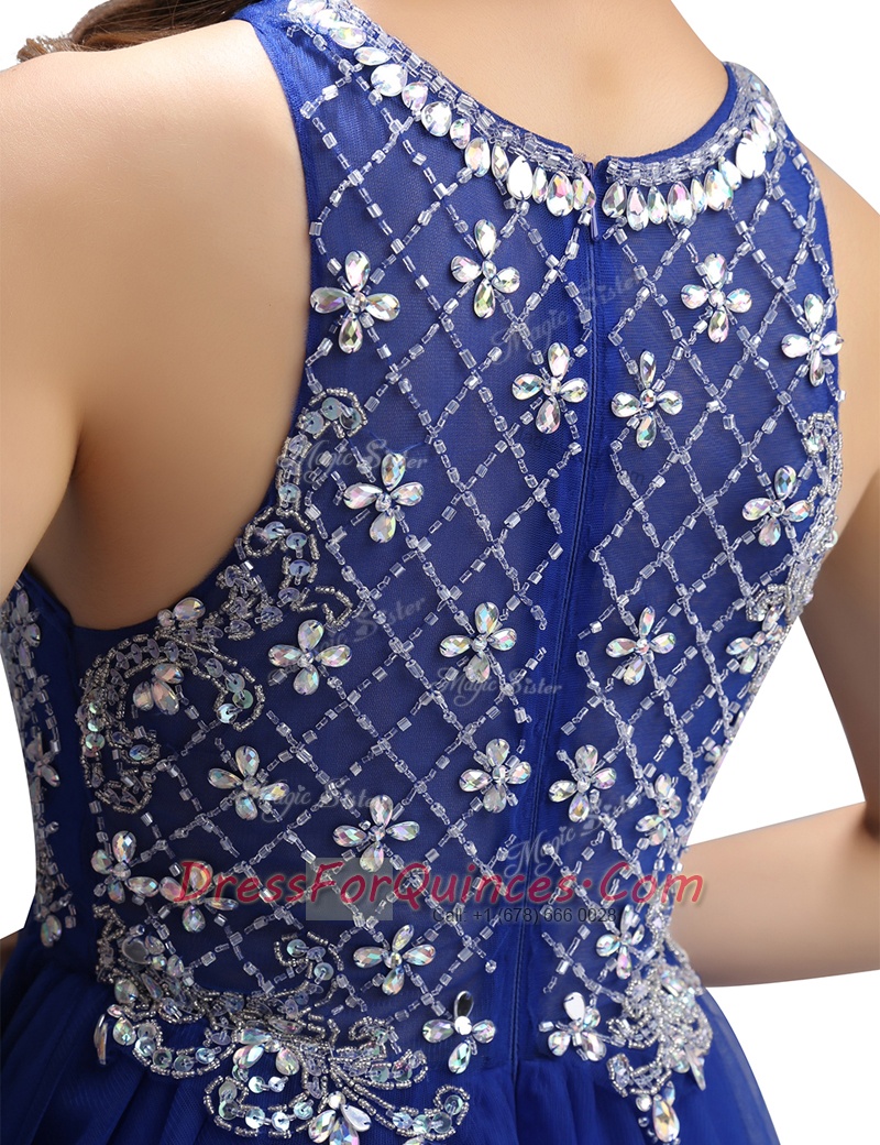 Royal Blue Sleeveless Beading Mini Length Homecoming Dress