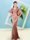 Rust Red Zipper Homecoming Dress Sequins Half Sleeves Floor Length