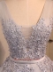 Sexy Grey Sleeveless Mini Length Beading and Appliques Lace Up Dress for Prom