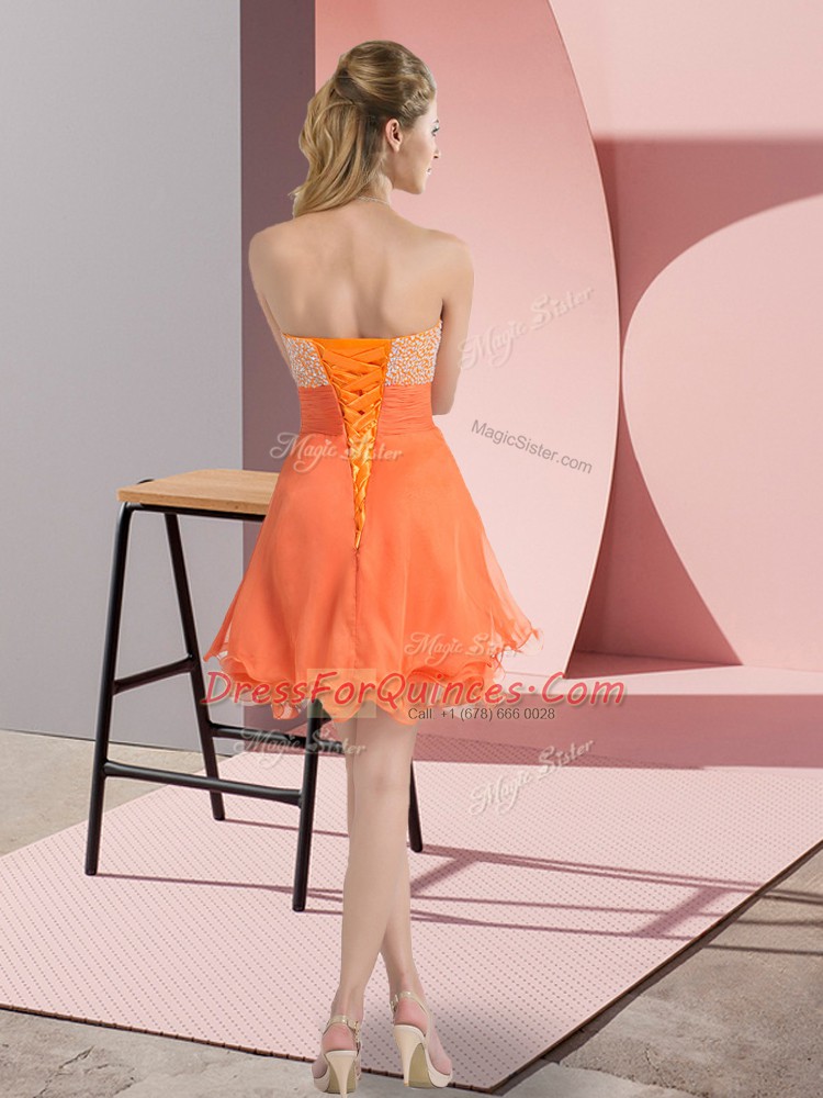 Simple Chiffon Sweetheart Sleeveless Lace Up Beading Prom Dress in Orange