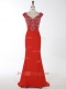 Simple Mermaid V-neck Sleeveless Chiffon Homecoming Dress Beading Brush Train Zipper