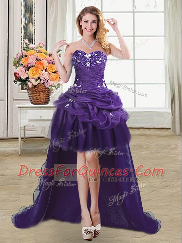 Sleeveless Beading and Appliques and Pick Ups Lace Up Dress for Prom