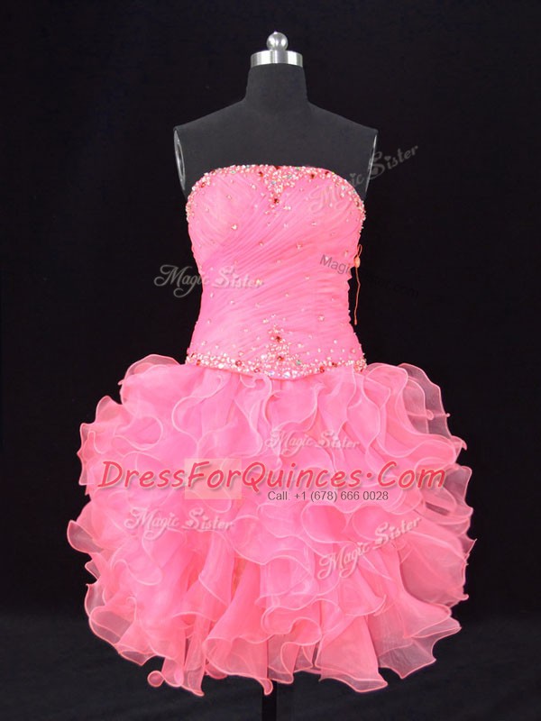 Sleeveless Beading and Ruching Lace Up Prom Evening Gown with Rose Pink