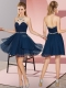 Sleeveless Chiffon Mini Length Zipper Prom Dress in Navy Blue with Beading