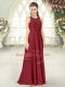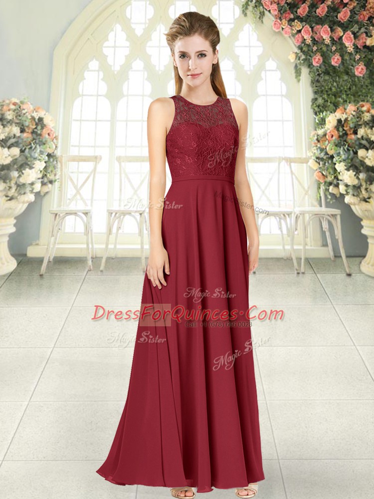 Sleeveless Floor Length Lace Backless Dress for Prom with Burgundy